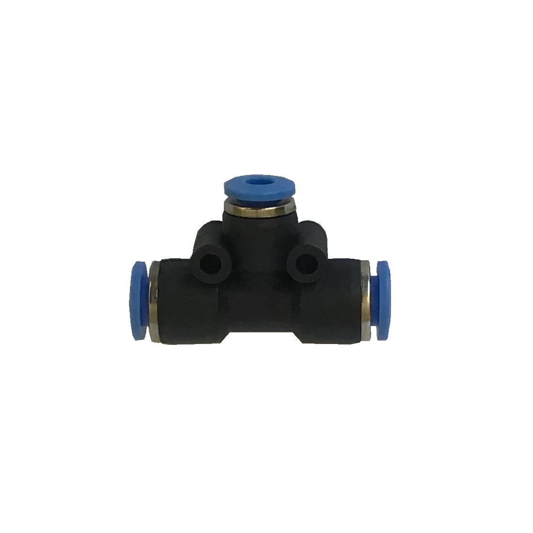 Nástrčná spojka ve tvaru T pro hadičku 2 x D 6 mm a 1 x D 4 mm. Délka: 39 mm. Barva: černá.[58]